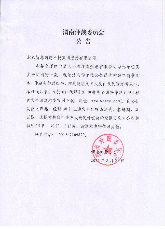北京新源國(guó)能科技集團(tuán)股份有限公司買(mǎi)賣(mài)合同糾紛案公告